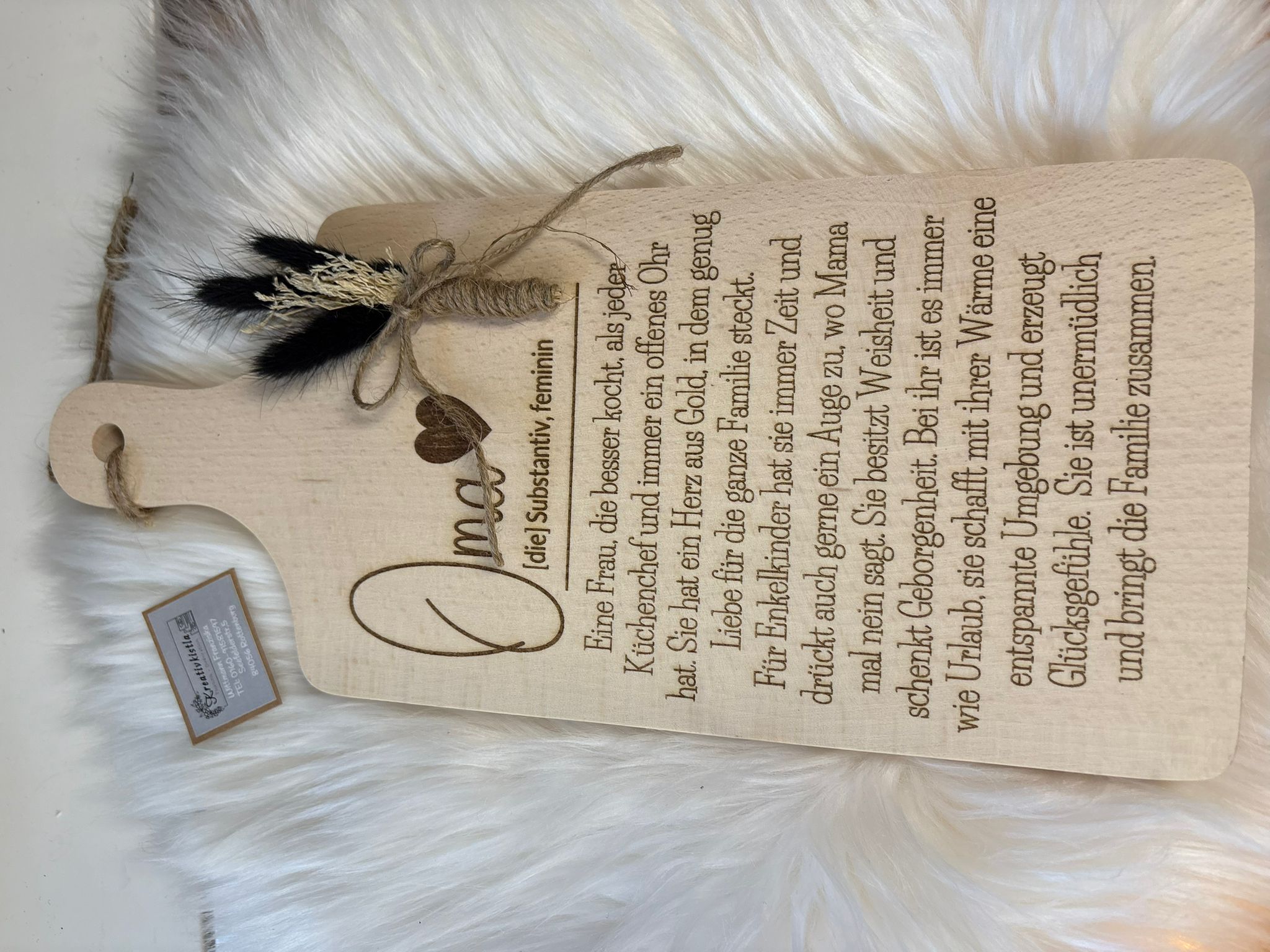 Dieses hochwertige Holzbrett mit praktischem Griff vereint natürliche Schönheit und persönliche Note. Die präzise Lasergravur verleiht dem Brett einen einzigartigen Charakter. Ob inspirierendes Zitat, Familiennamen, Logo oder Wunschtext- die Gravur macht aus jedem Stück ein Unikat.