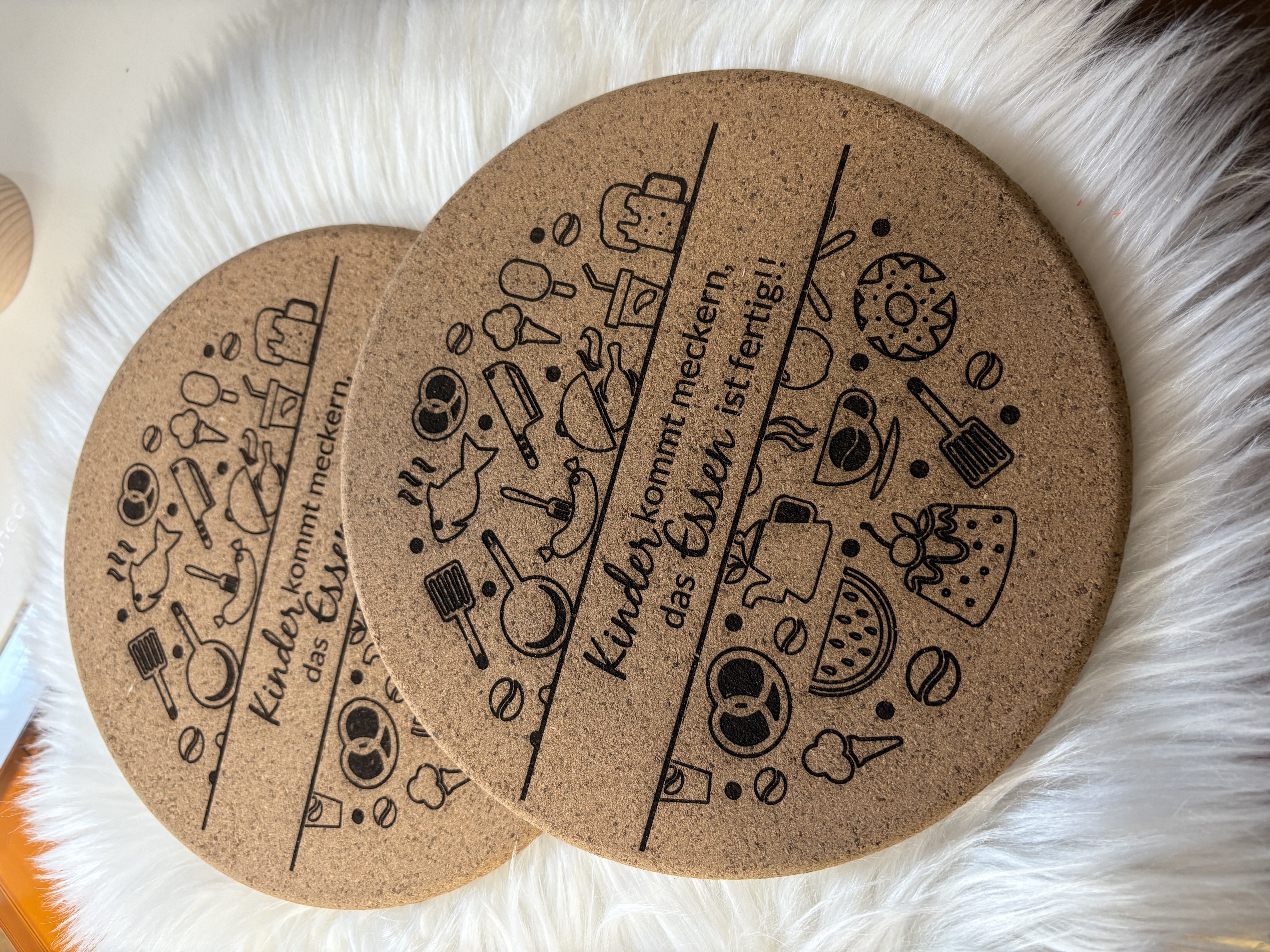 Dieser Topfuntersetzer aus Kork schützt nicht nur zuverlässig Tisch und Arbeitsflächen vor Hitze, sondern bringt mit einem liebevollen oder humorvollen Spruch auch eine besondere Note in Ihre Küche. Die Kombination aus natürlichem Material und dekorativem Design macht ihn zu einem praktischen und zugleich stilvollen Küchenaccessoire.